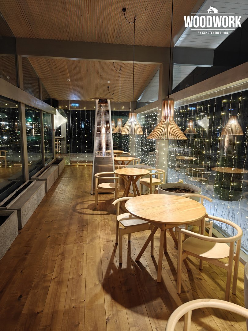 По-домашнему УЮТНО и УМИРОТВОРЕННО смотрится теплый белый или желтый цвет светильников, если на террасе предполагается ОБЕДЕННАЯ зона, то на нее можно сделать ДОПОЛНИТЕЛЬНЫЙ АКЦЕНТ, расположив над столом светильник с абажуром или светодиодную гирлянду.